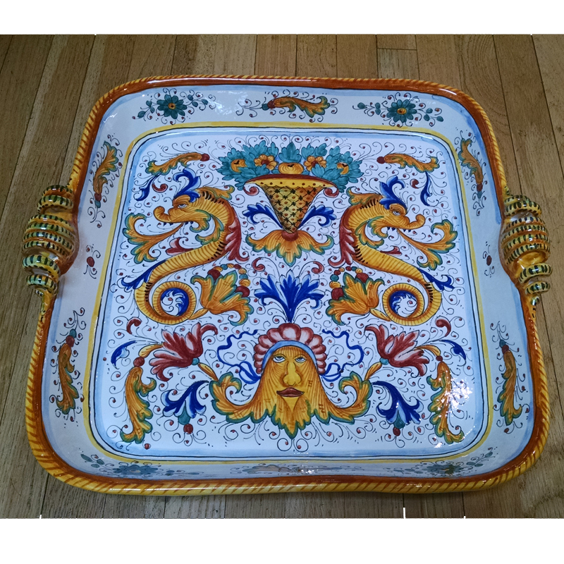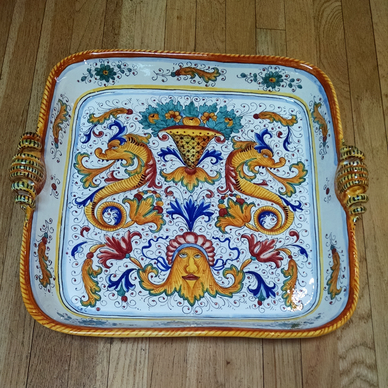 Handmade and hand painted in Deruta, Italy.