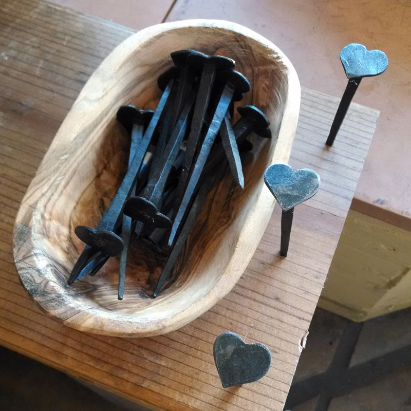 Proclaim your love boldly by nailing a love letter into your loved one’s front door! Or, make a sweet little coat rack with some wood and several of these cute heart-shaped nails. At $3 per pop, I could certainly think of a few uses for these! Hand forged in India.