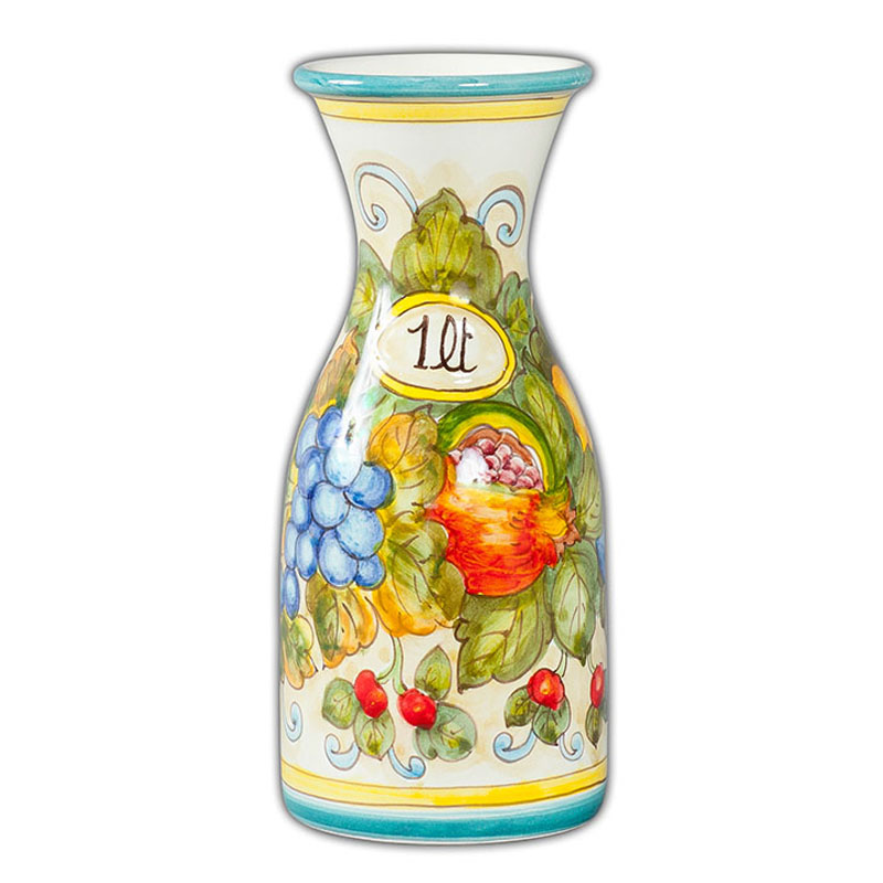 A wine carafe is a great addition to any wine lover’s home! What better way to serve your delicious vino than from this handmade, hand painted carafe, decorated with an abundance of fruits settled snugly among a bed of leaves and flowers.