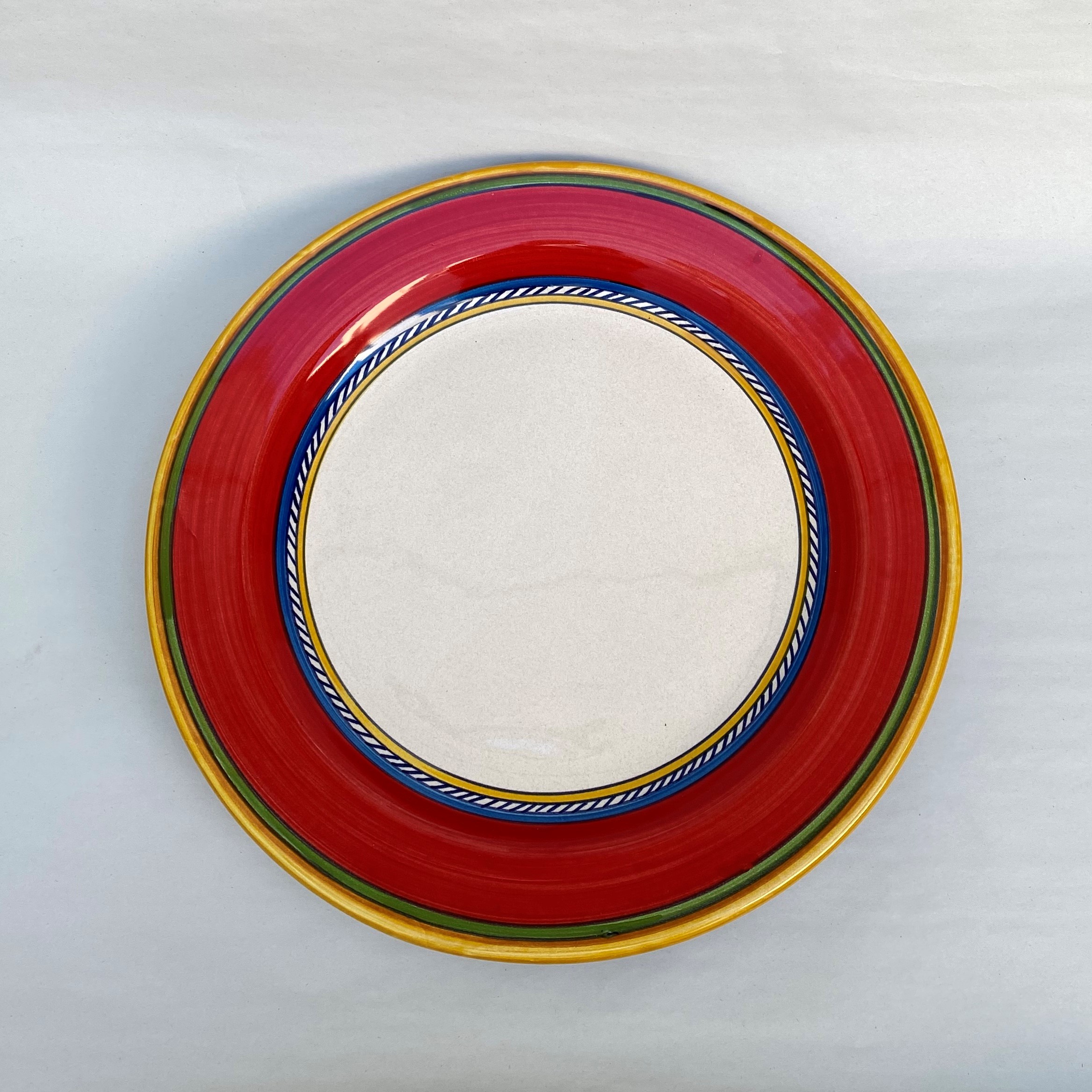 The hand painted color-blocked design of these simple ceramics from Deruta plays well with others – made to coordinate with our Geometrico Patterns A, B, C, and D (though they’ll also work with many others) for a fun, mix-and-match style.