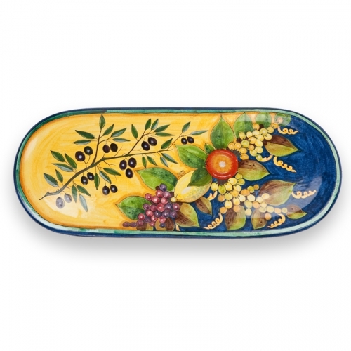 This unique platter will work well vertically or horizontal to add a splash of Tuscan cheer to any space! Great for cabinet top spaces!
