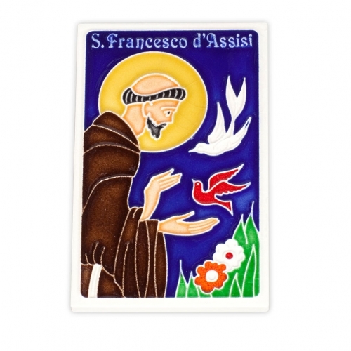 A beautiful tile of the patron saint of animals, St. Francis, reaching out to the birds.