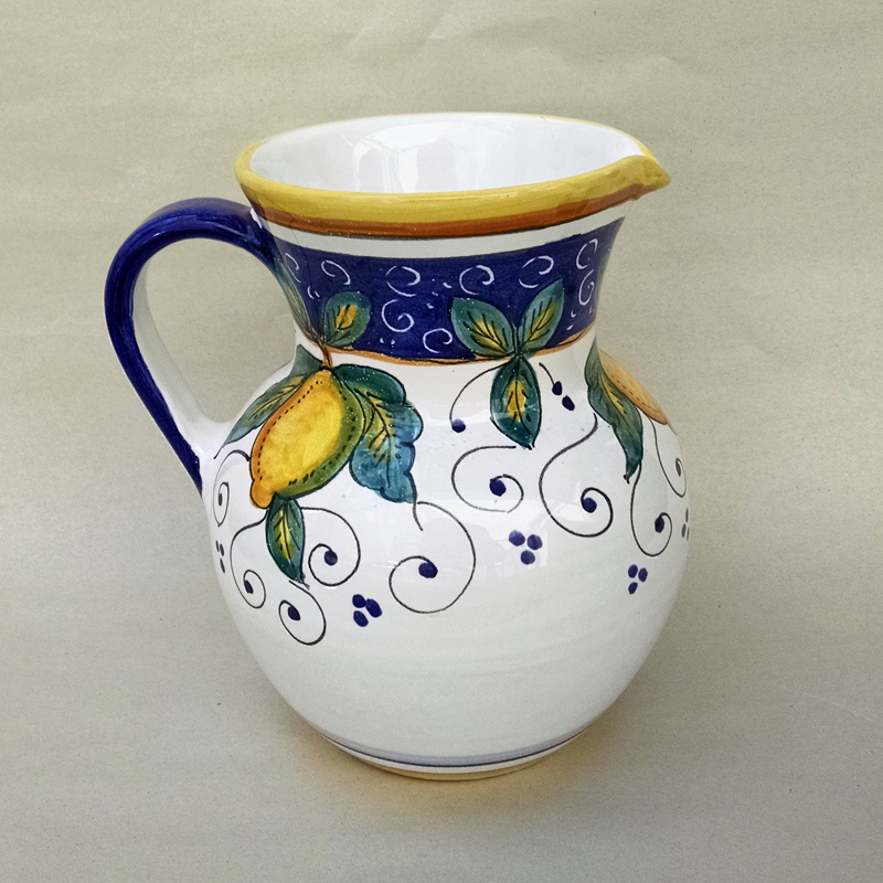Bring stunning Italian style and freshness to the dinner table with this simple yet elegant lemon and leaf motif on a clean, crisp, white background. Handmade and hand painted in Umbria, and triple fired for extra luster and durability, Alcantara is one of our very favorite dinnerware designs! Create a breathtaking table with the lovely Alcantara! Give any ice cold beverage or fine wine a touch of Italy with this lovely handmade pitcher. Try pairing with the other pieces of our Italian dinnerware, such as our wine cups, U6/11A for a beautiful serving display of fine Italian ceramic serveware. “Perfect. Exactly what I wanted. Received quicker than expected. Could not have asked for better service. “